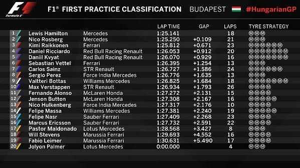 Lotus Racing also had significant issues. Facing serious cash flow issues, the team only received their tyres 50 minutes prior to the start of practice. Romain Grosjean sat out the session and was substituted by British driver Jolyon Palmer, who drove alongside Grosjean’s teammate Pastor Maldonado. Palmer was unable to set a time.