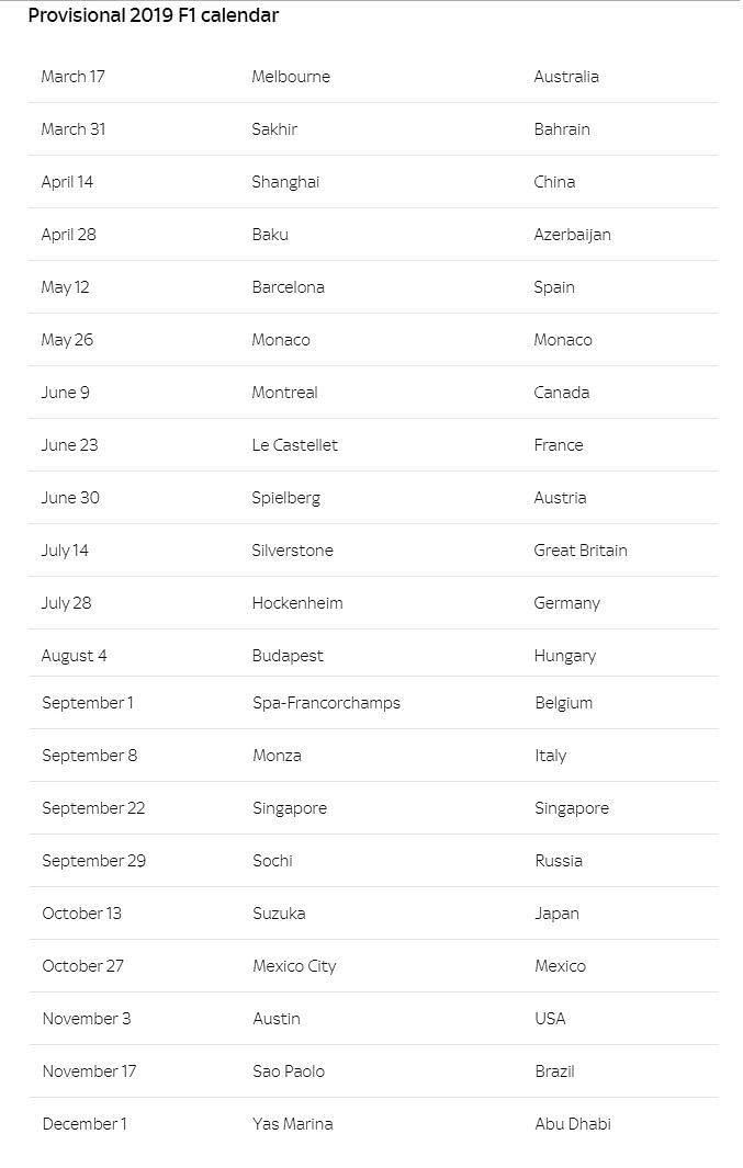 German and French Grands Prix were additions made in 2018 and they would continue to hold races at their respective circuits. Similarly, the Belgium Grand Prix retains its place on next year’s calendar after its contract was extended till 2021.