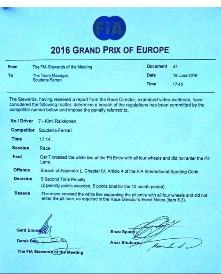 Kimi Raikkonen of Ferrari ended up in a similar mess back in 2016 at the European Grand Prix in Baku. Raikkonen was deemed to have had all four of his tyres inside the entry of the pit lane lines after which the Finnish driver headed back onto track. Ferrari officials would almost certainly have had something to do with the incident as well, but back then, Raikkonen was immediately slapped with a five-second penalty for his efforts.