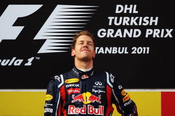 Sebastian Vettel of Red Bull Racing celebrates on the podium after winning the 2011 Turkish Grand Prix at the Istanbul Park circuit. (Courtesy: Getty Images)