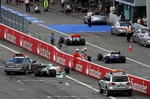 It has a wonderful blend of the straight lines and also the corners at the right places. It provides good opportunities for overtaking and also the drivers have to control their cars properly to avoid any accidents. We have already seen two cars crashing into the side walls. Liuzzi crashed into the side pit wall and Hamilton skidded of the circuit to hit the wall barricade and damage his front nose and rear wing.