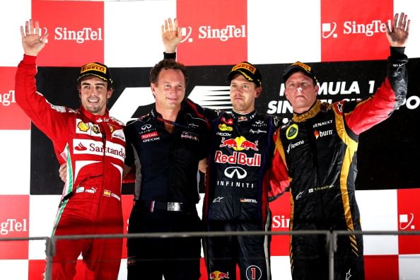 Kimi reached the podium at the 2013 Singapore GP despite starting from 13th on the grid and fighting a re-occurring back pain.