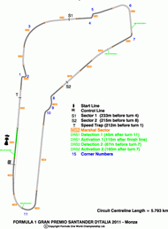 There would be two DRS zones in Sunday’s race. The first zone is in the pit straight just after the finish line. The second zone will be after turn 7 leading up to the curva vialone. Two DRS zones in a single race is sure to keep the stewards and the teams busy over the detection and the activation of the system .Drivers would have to utitlise the DRS to maximise overtaking opportunities. A lot of overtaking is expected in Sunday’s race, in these two zones.