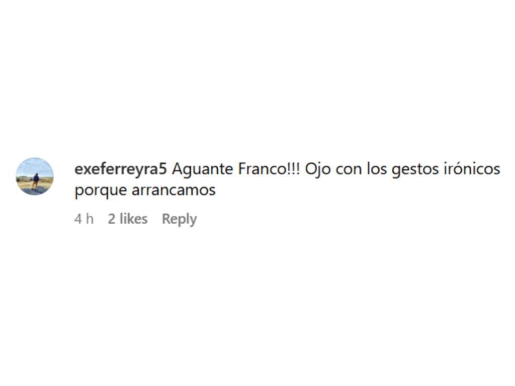 "Long live Franco!!! Watch out for ironic gestures because we're starting off" (@exeferreyra5 on Instagram)