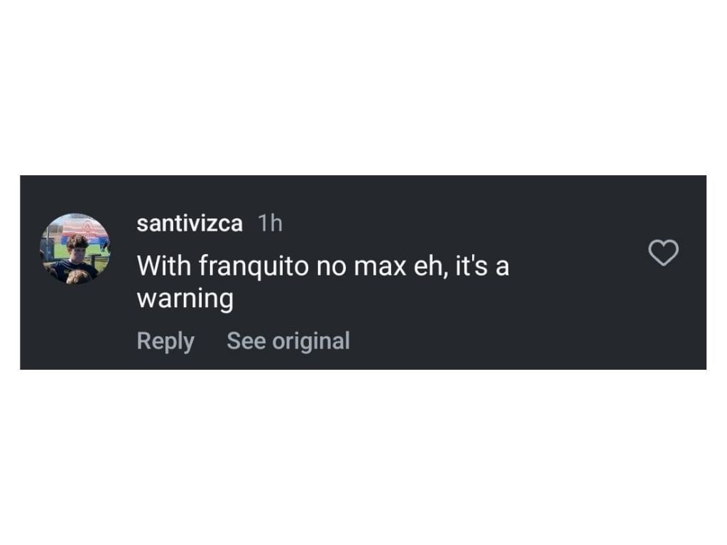"What does that f**king Dutchman say? Who knows you When you become a world champion, like we speak, ah... #VuelveFranco," a comment read.