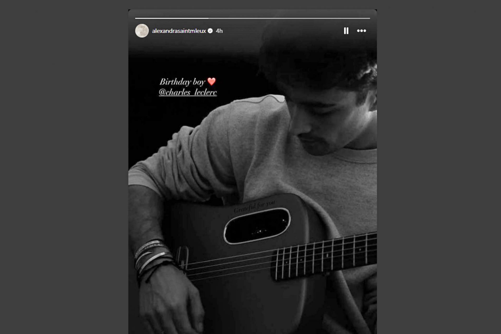 On her official Instagram account, she posted a story of Leclerc's black and white picture where he was holding a guitar. The caption of the photograph said "Birthday boy".