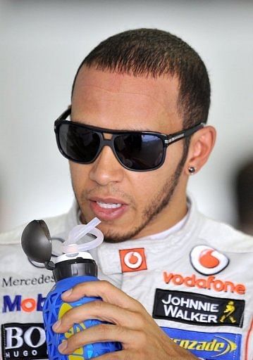 McLaren-Mercedes driver Lewis Hamilton of Britain drinks water in the pit during the third practice session of the Formula One Japanese Grand Prix at the Suzuka circuit on October 6, 2012.Hamilton offered an apology to his new Mercedes team-mates Sunday after he committed the cardinal sin of driving into the wrong pitstop garage — that of his ex-employer McLaren.