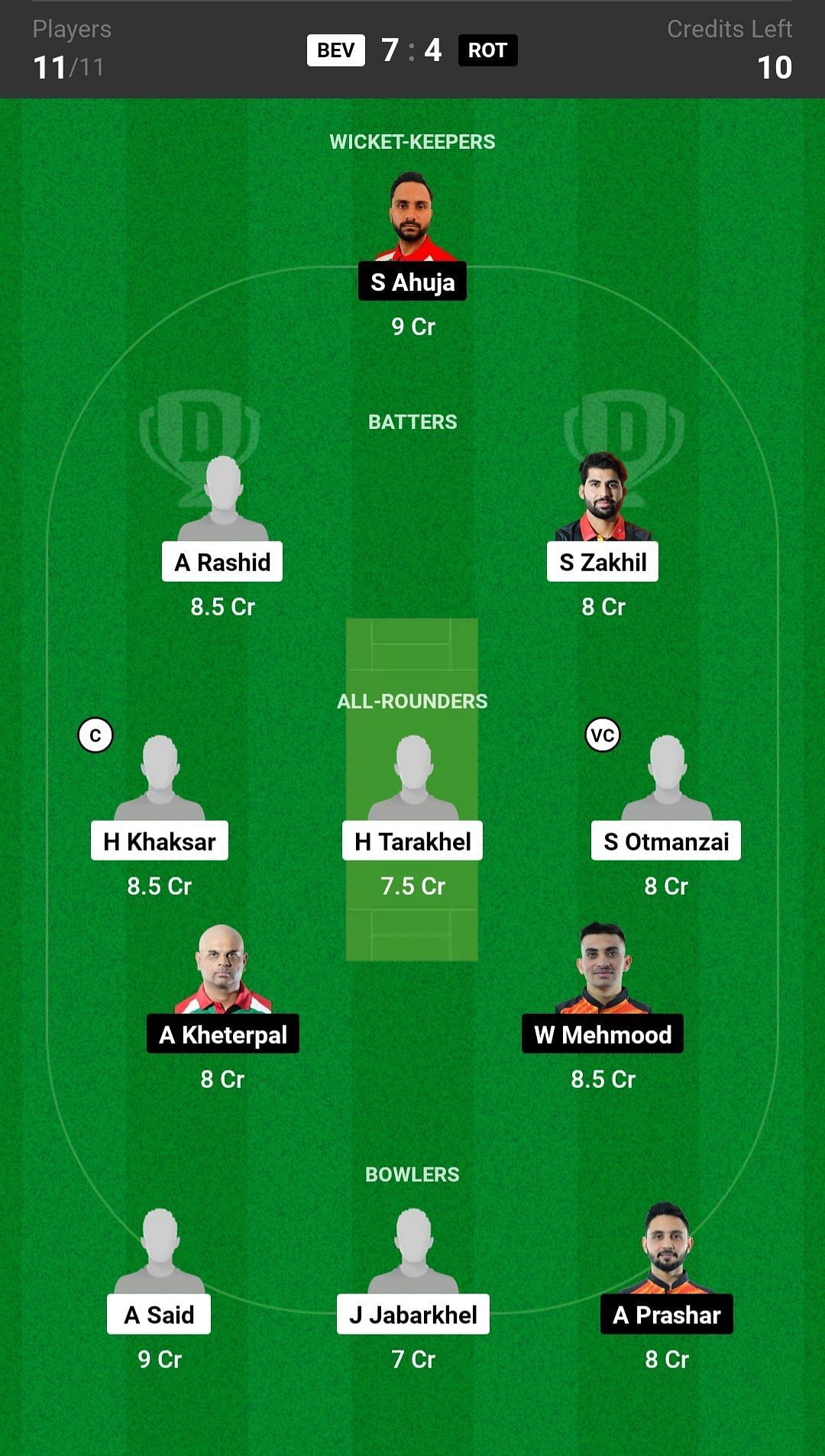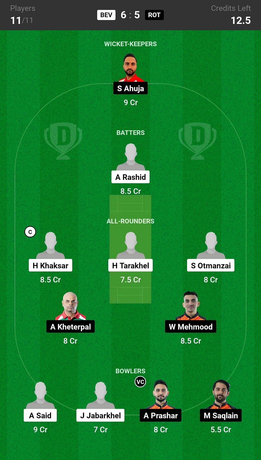 BEV vs ROT match captain and vice-captain choices