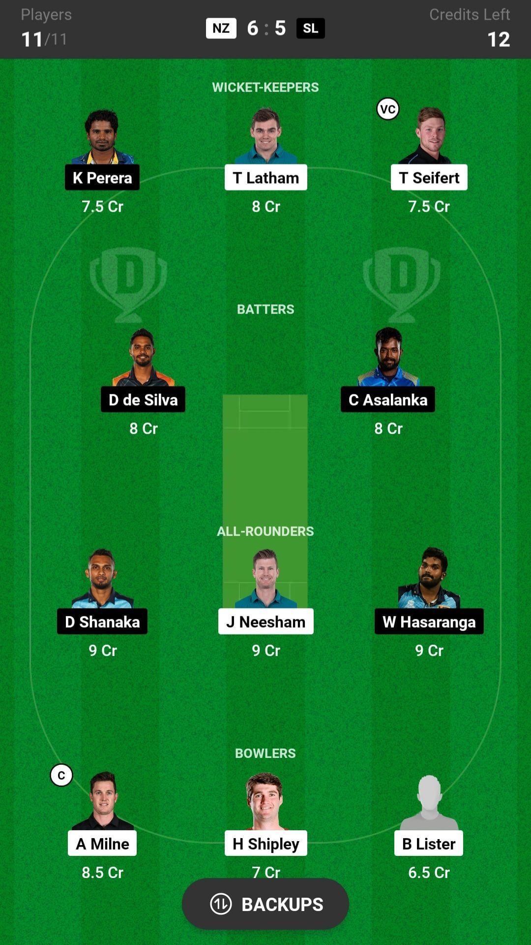 Bowlers: A Milne, B Lister, M Theekshana, P Madushan, I Sodhi