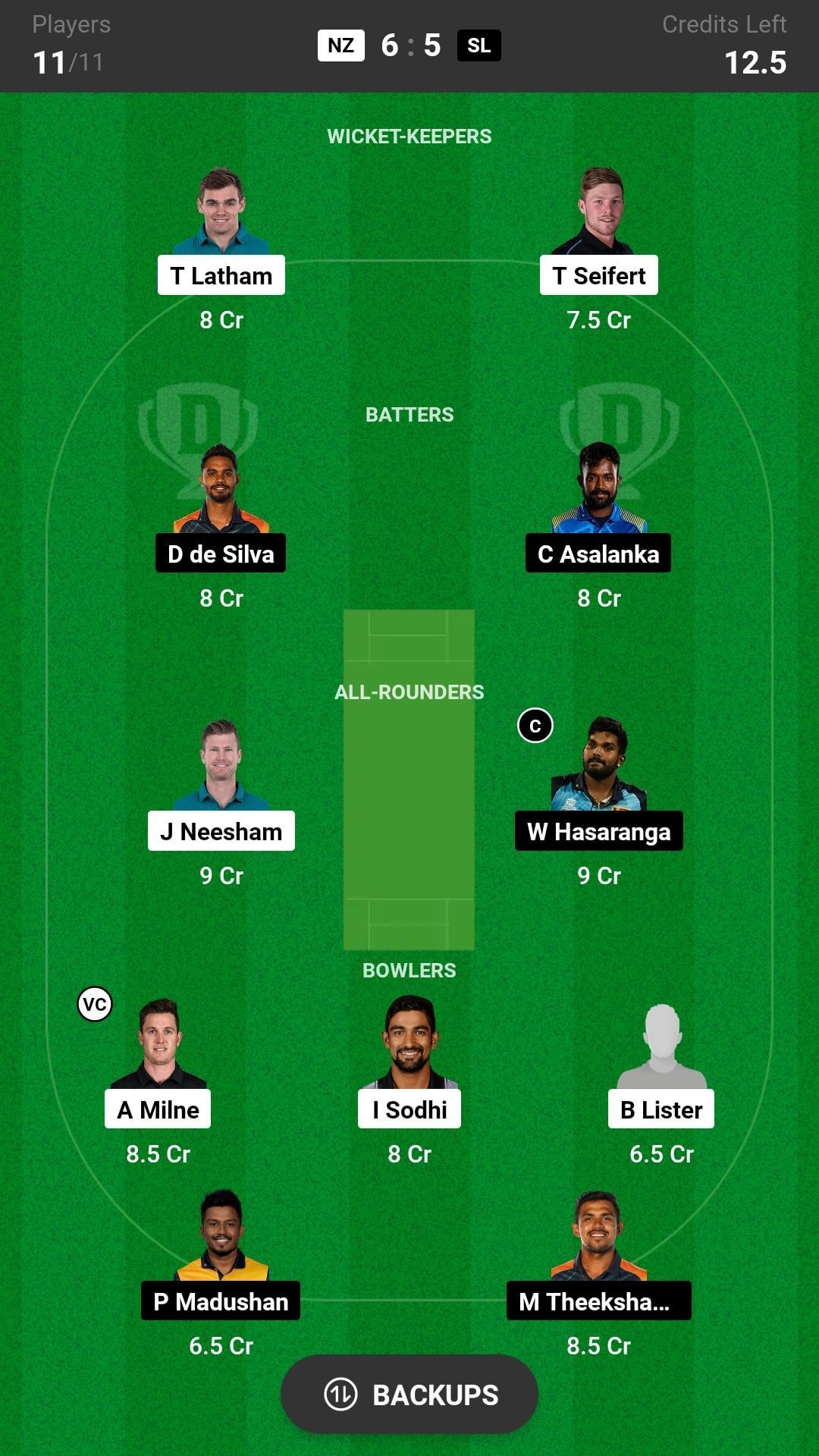 New Zealand vs Sri Lanka Dream11 Prediction Today, Grand League