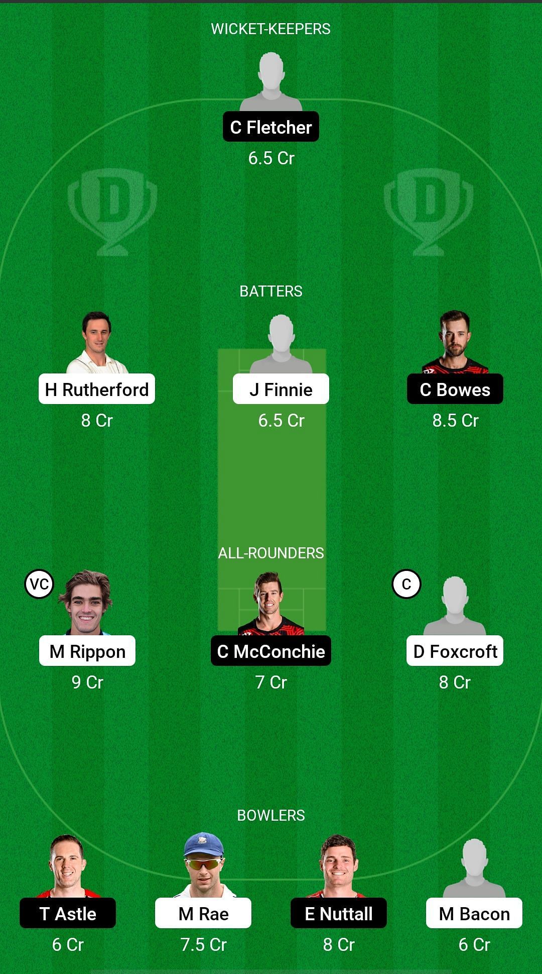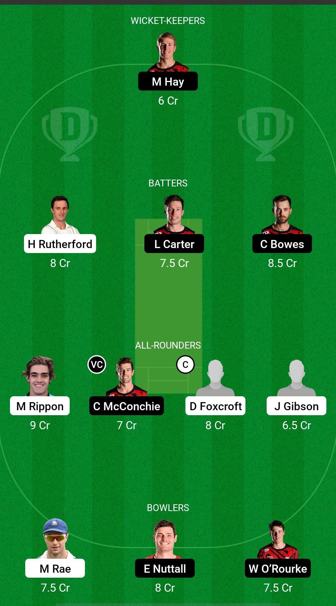 CD Fletcher, Mitchell Hay, CJ Bowes, LJ Carter, KJ McClure, CE McConchie (c), Zak Foulkes, EJ Nuttall, William O’Rourke, TD Astle, and Angus McKenzie.