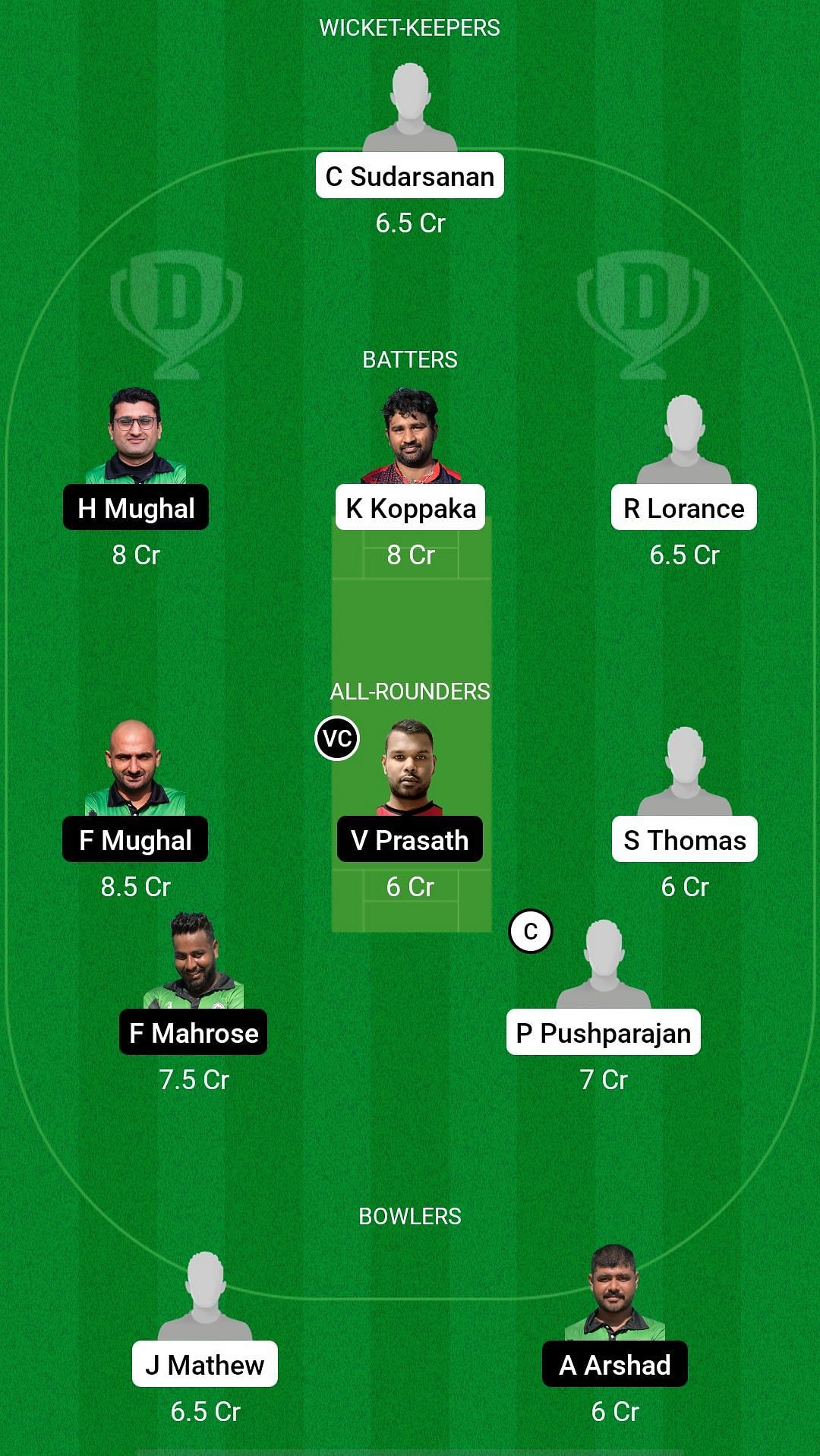 All-rounders: Fanyan Mughal, Priyan Pushparajan, Savio Thomas, Varun Prasath, Faisal Mahrose