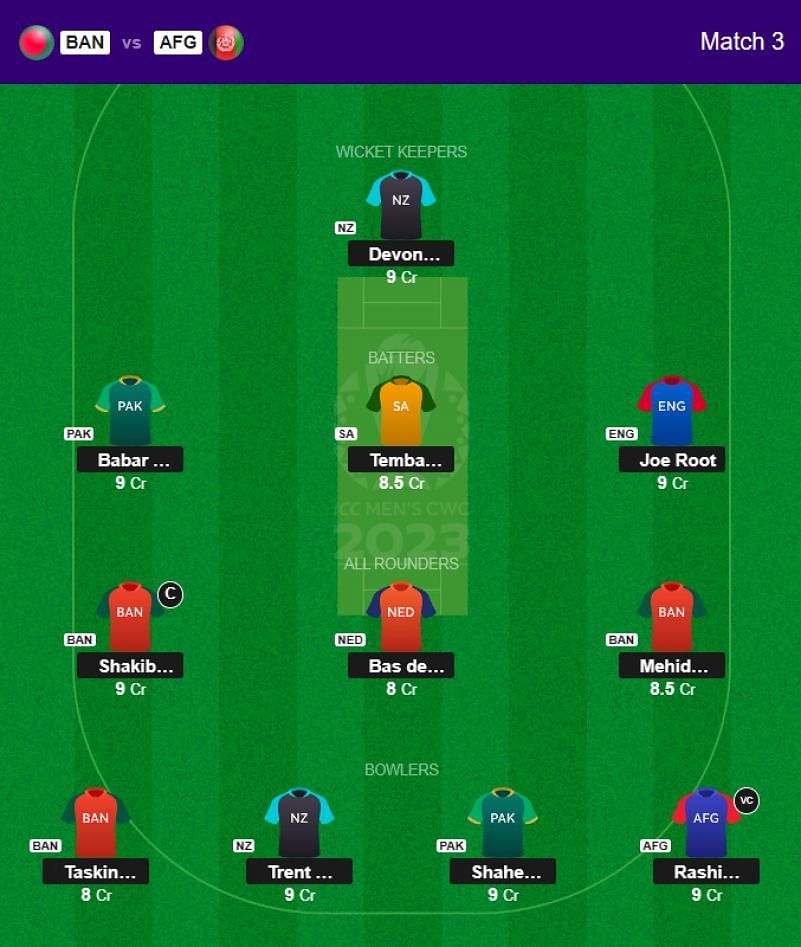 2023 World Cup Fantasy - Best Fantasy XI for Match 3 - BAN vs AFG: Thoughts and Captaincy Tips