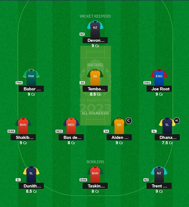 All-rounders like Rachin Ravindra and Bas de Leede have scored big in the first two matches of this World Cup, so I'm hoping I have the right all-rounders on my team and I hand the armband to the most optimum pick.