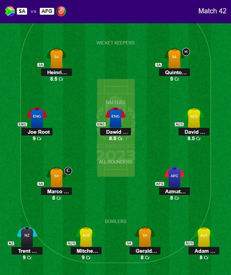 Best 2023 World Cup Fantasy Team for Match 42 - SA vs AFG