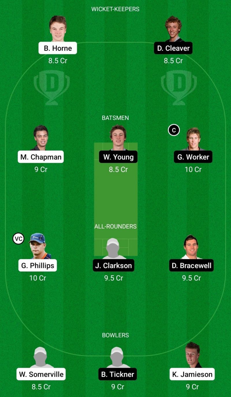 Auckland: Martin Guptill, Sean Solia, Glenn Phillips, Mark Chapman, Robert ODonnell (c), Ben Horne (wk), Kyle Jamieson, William Somerville, Louis Delport, Ben Lister, Ross ter Braak