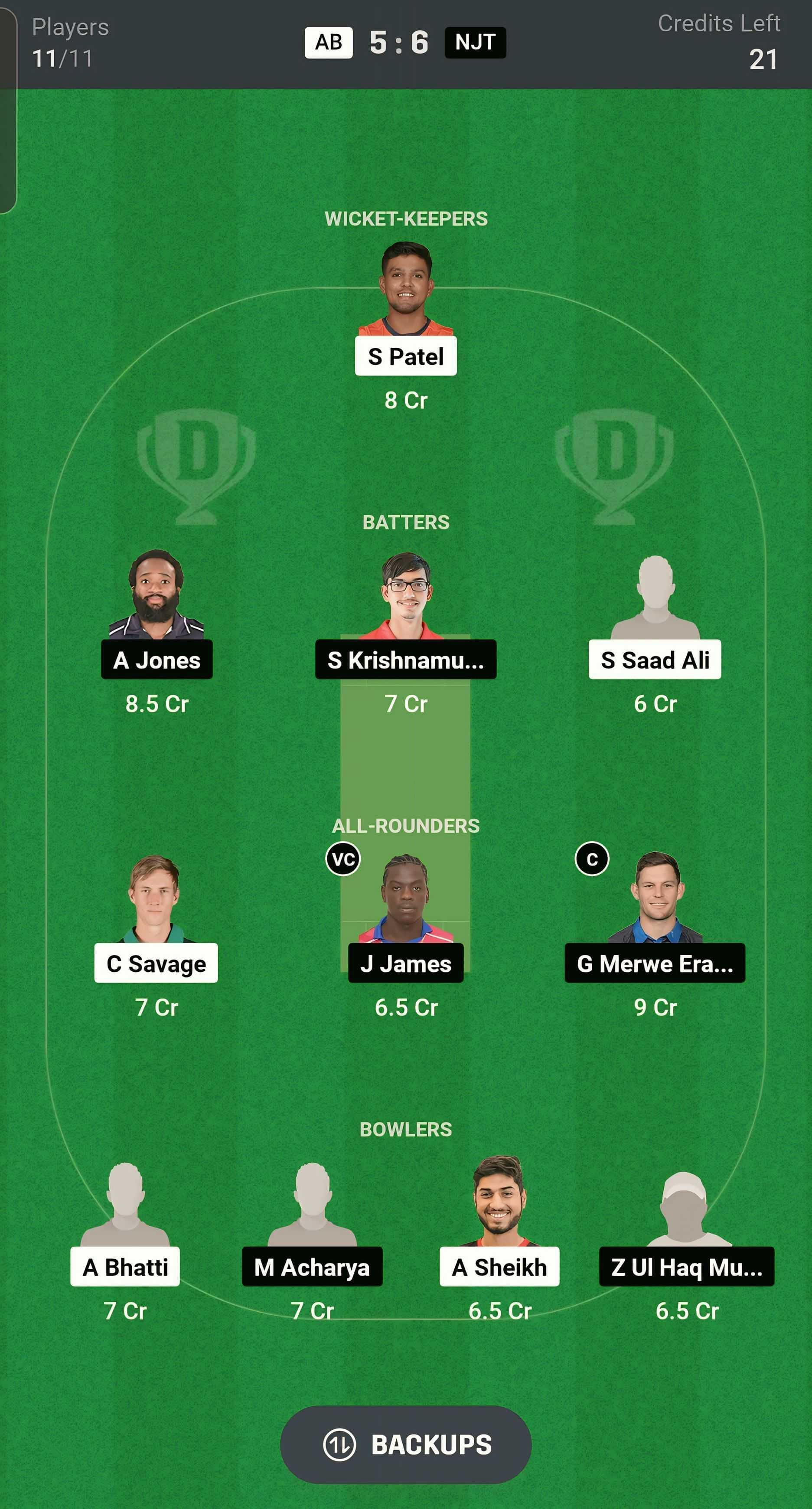AB vs NJT match captain and vice-captain choices