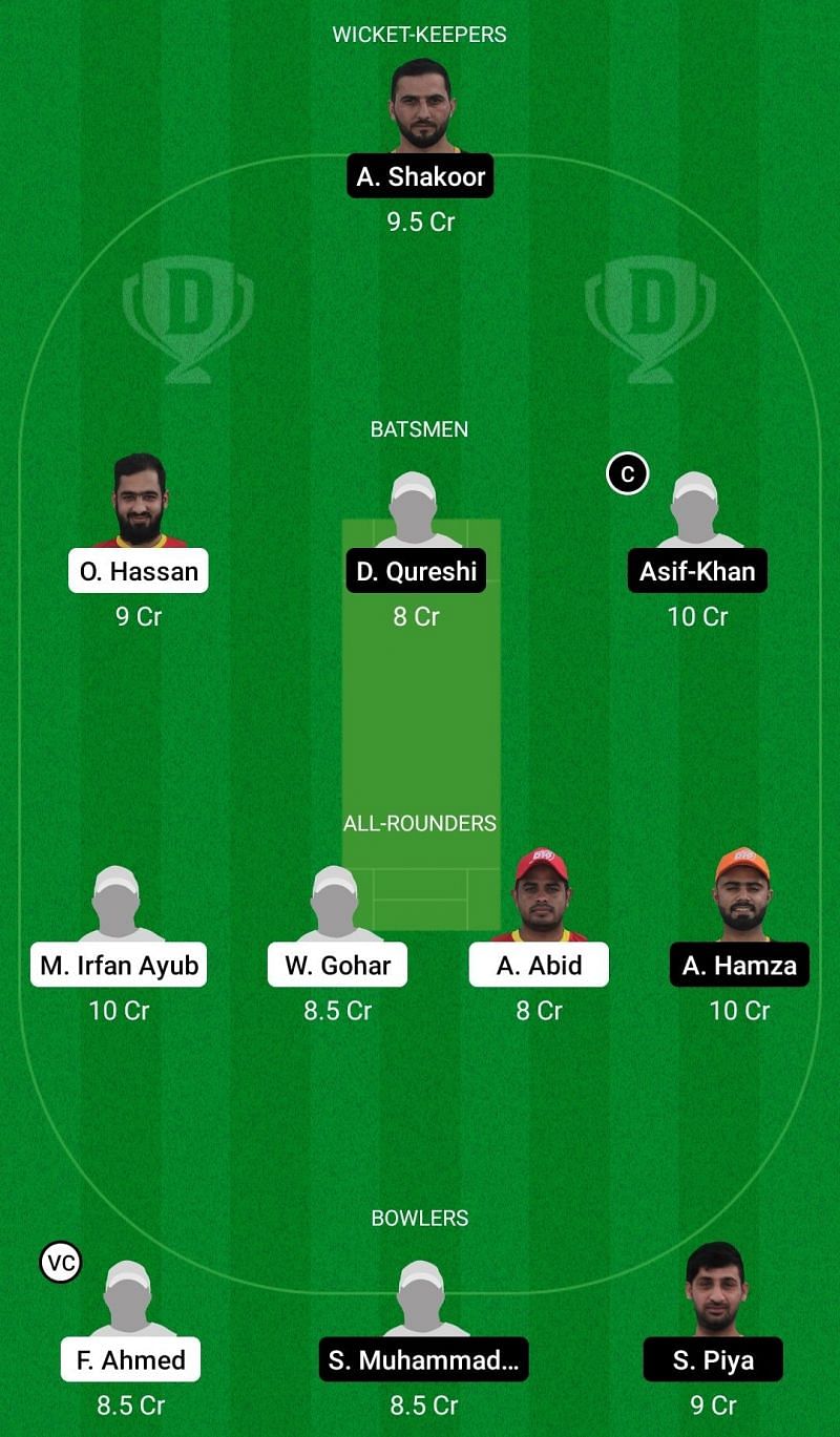 Captain: Ameer Hamza. Vice-captain: Abdul Shakoor