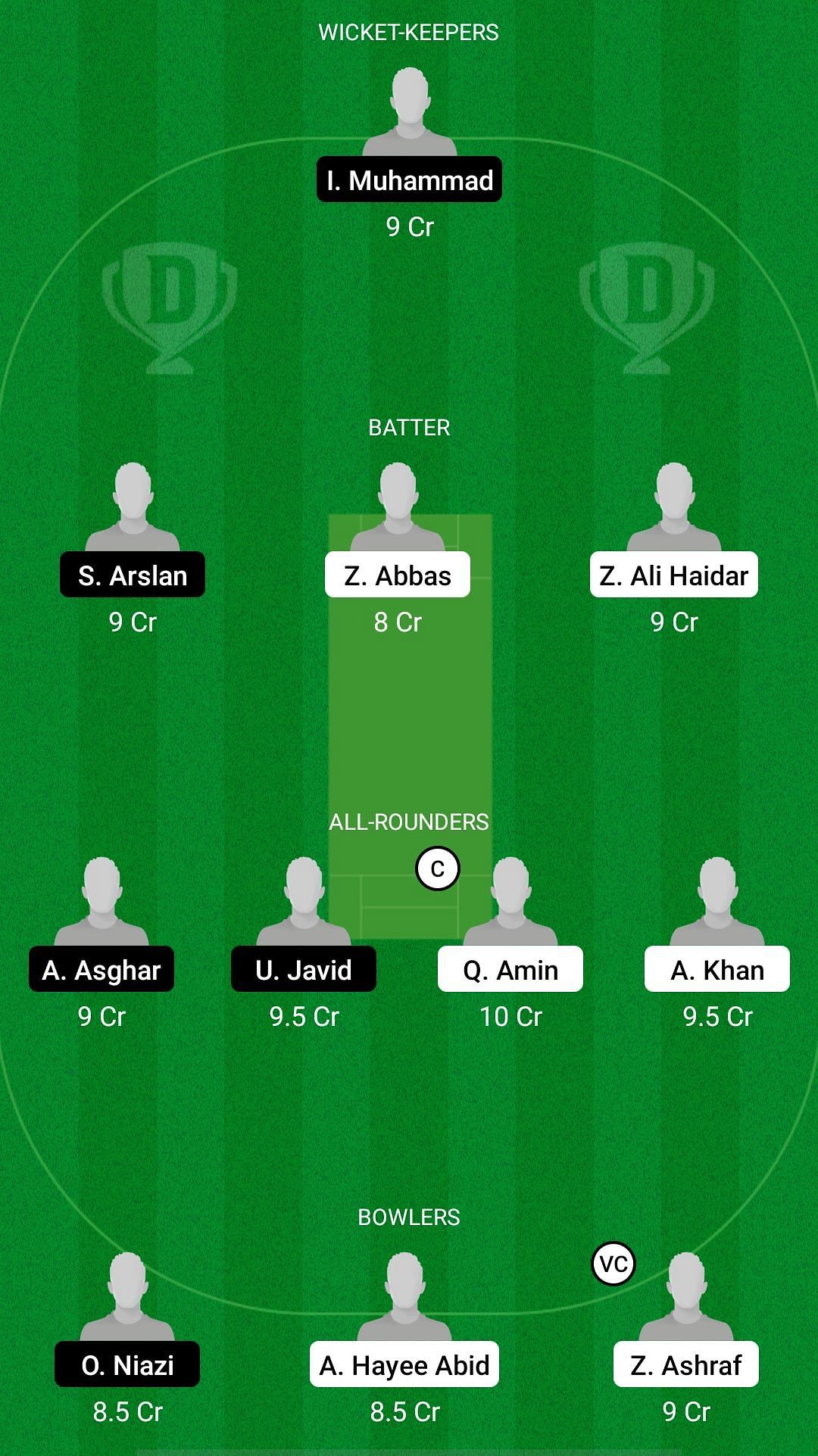 Fantasy Suggestion #1: Issa Muhammad, Shabbir Arslan, Zaryab Abbas, Zain Ali Haidar, Ali Asghar, Umair Javid, Qasir Amin, Akif Khan, Omid Niazi, Abdul Hayee Abid, Zubair Ashraf.