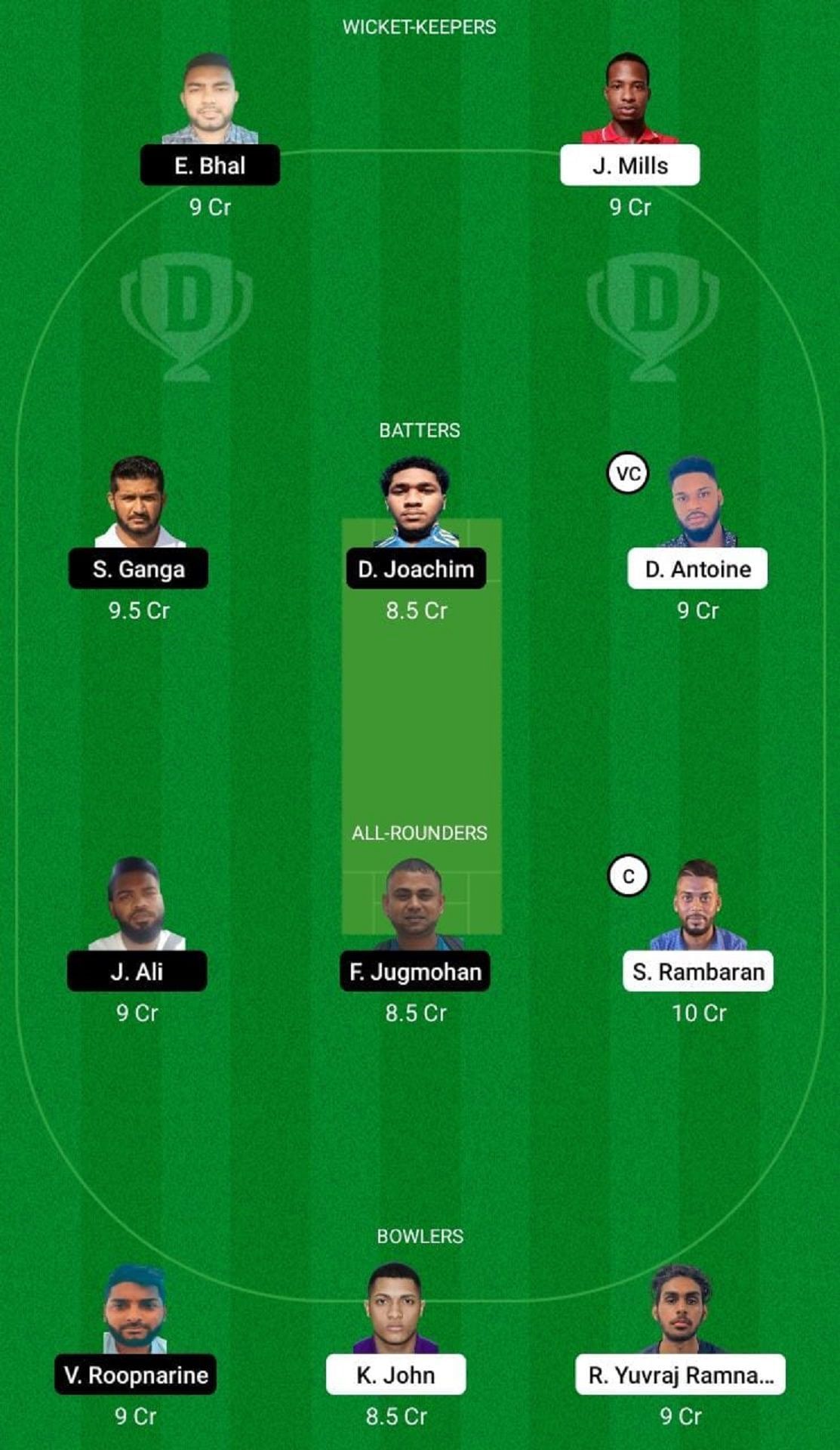 Fantasy Suggestion #1: J Mills, E Bhal, D Antoine, S Ganga, D Joachim, S Rambaran, F Jugmohan, J Ali, K John, V Roopnarine, R Yuvraj Ramnarine