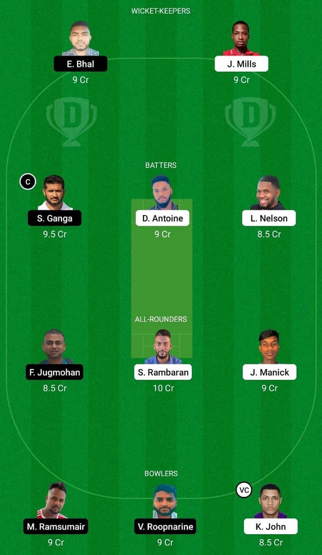 Fantasy Suggestion #2: J Mills, E Bhal, L Nelson, D Antoine, S Ganga, J Manick, S Rambaran, F Jugmohan, K John, V Roopnarine, M Ramsumair