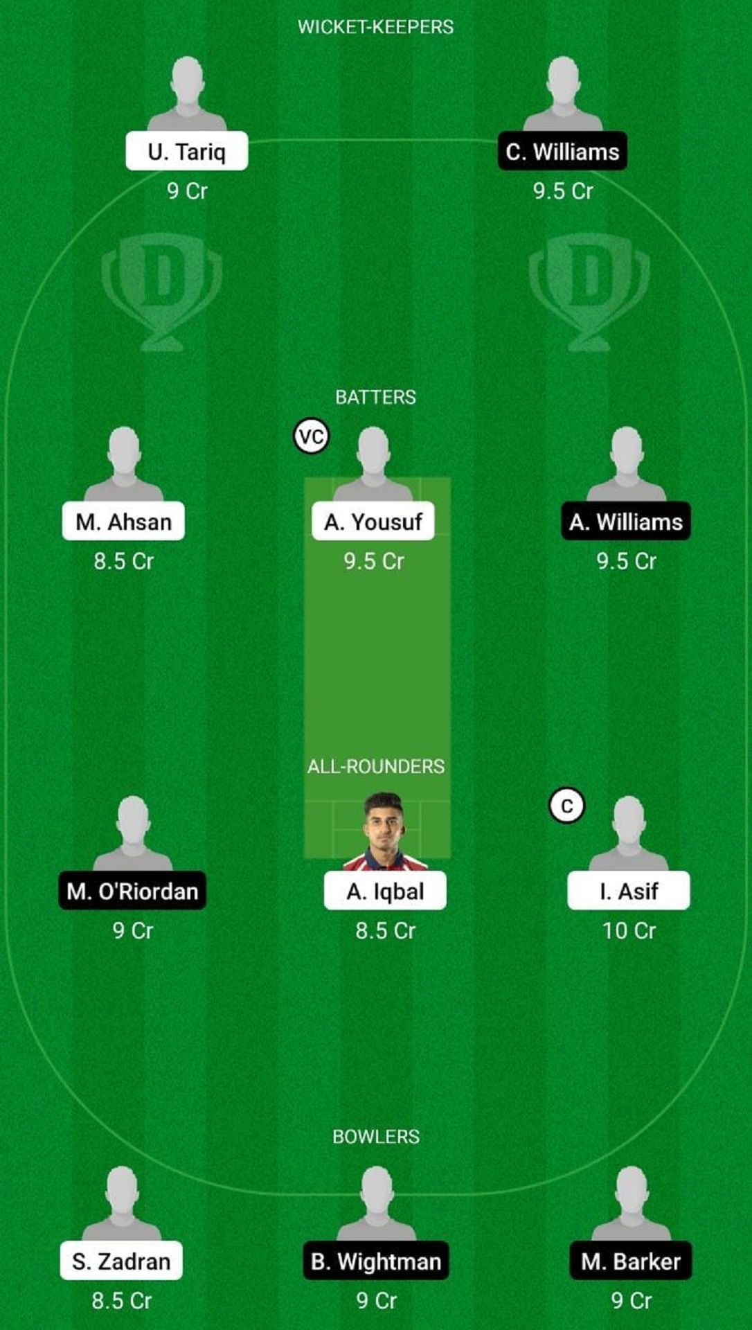 Fantasy Suggestion #1: U Tariq, C Williams, A Yousuf, A Williams, M Ahsan, I Asif, M O’Riordan, A Iqbal, M Barker, B Wightman, S Zadran