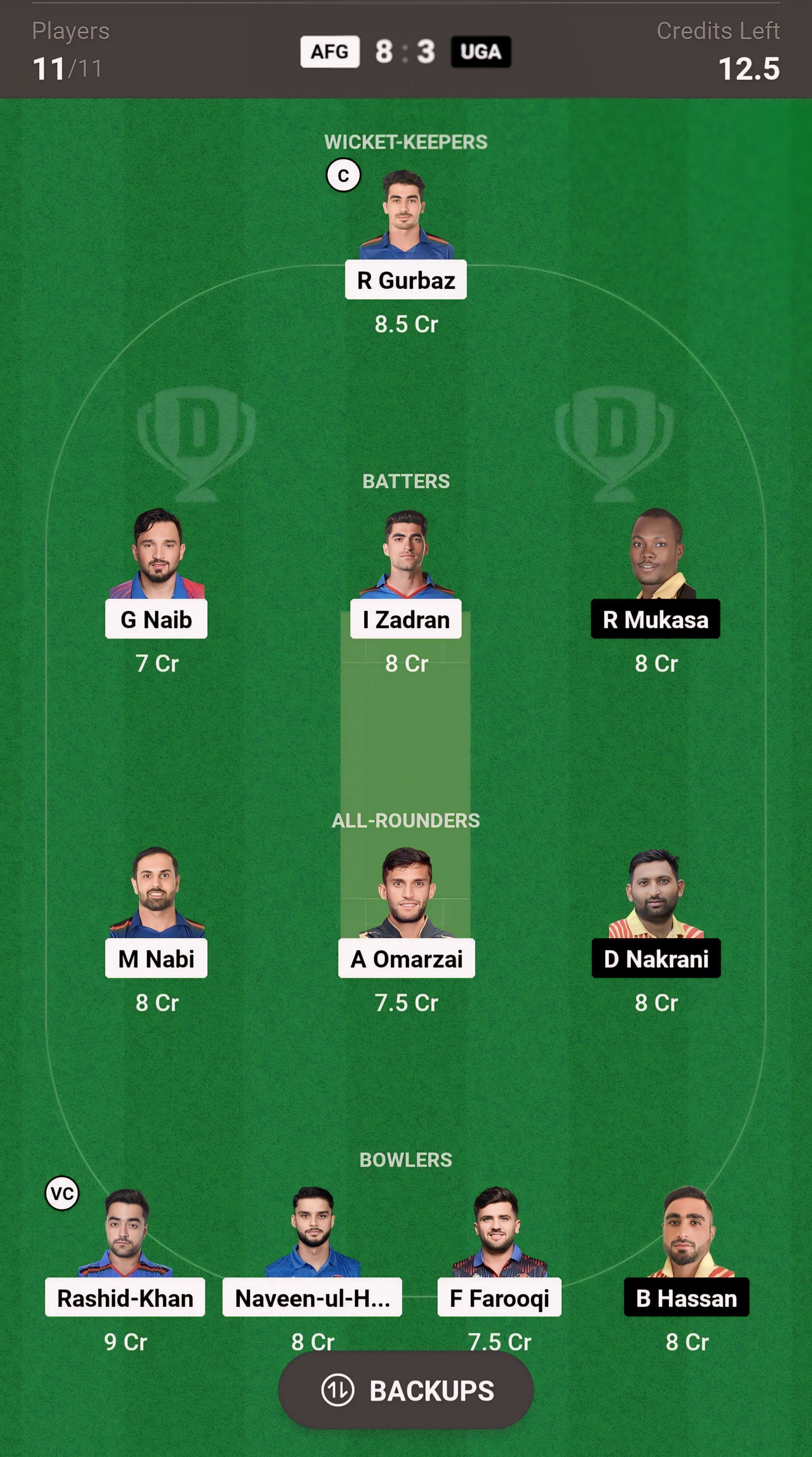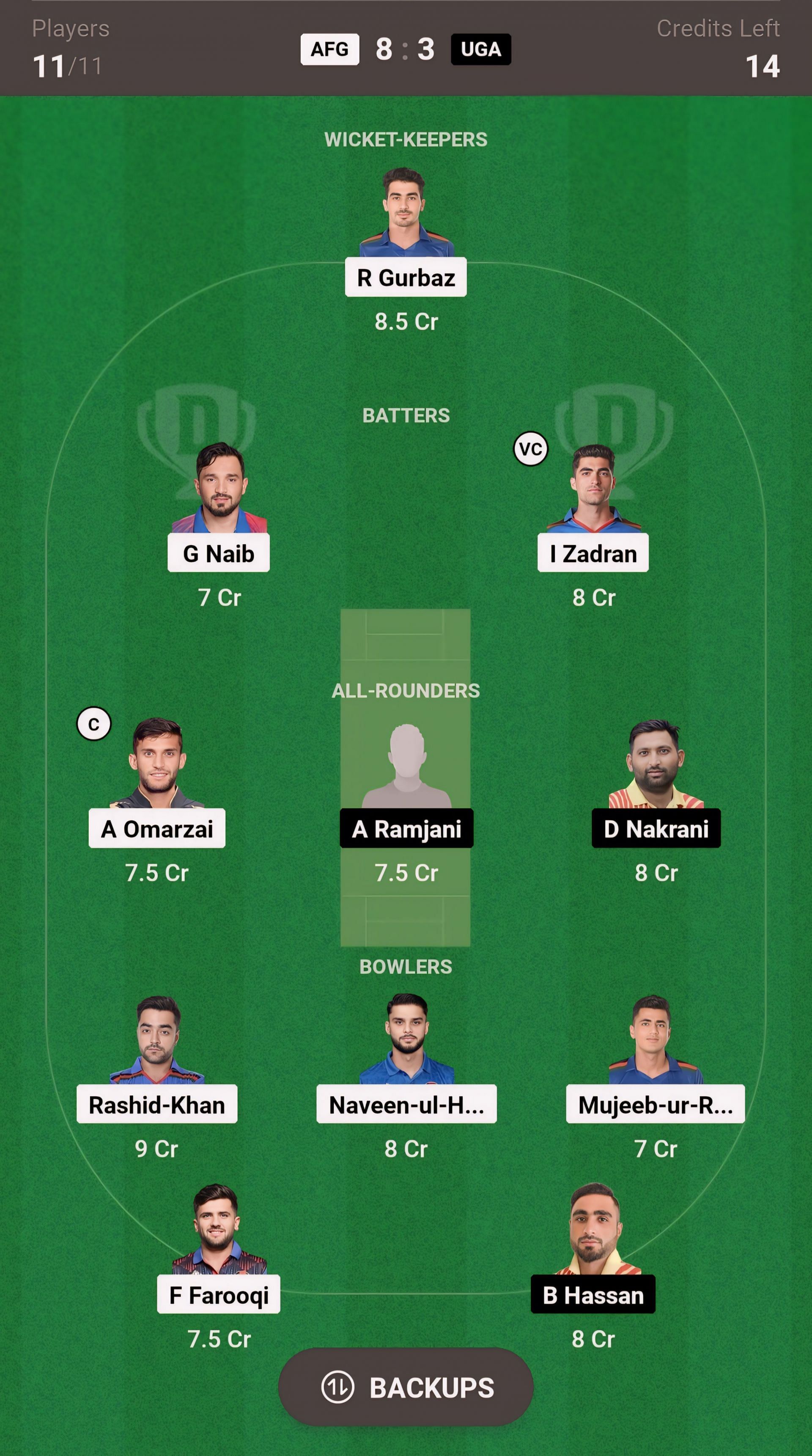 Afghanistan vs Uganda Dream11 Prediction Today, Grand League