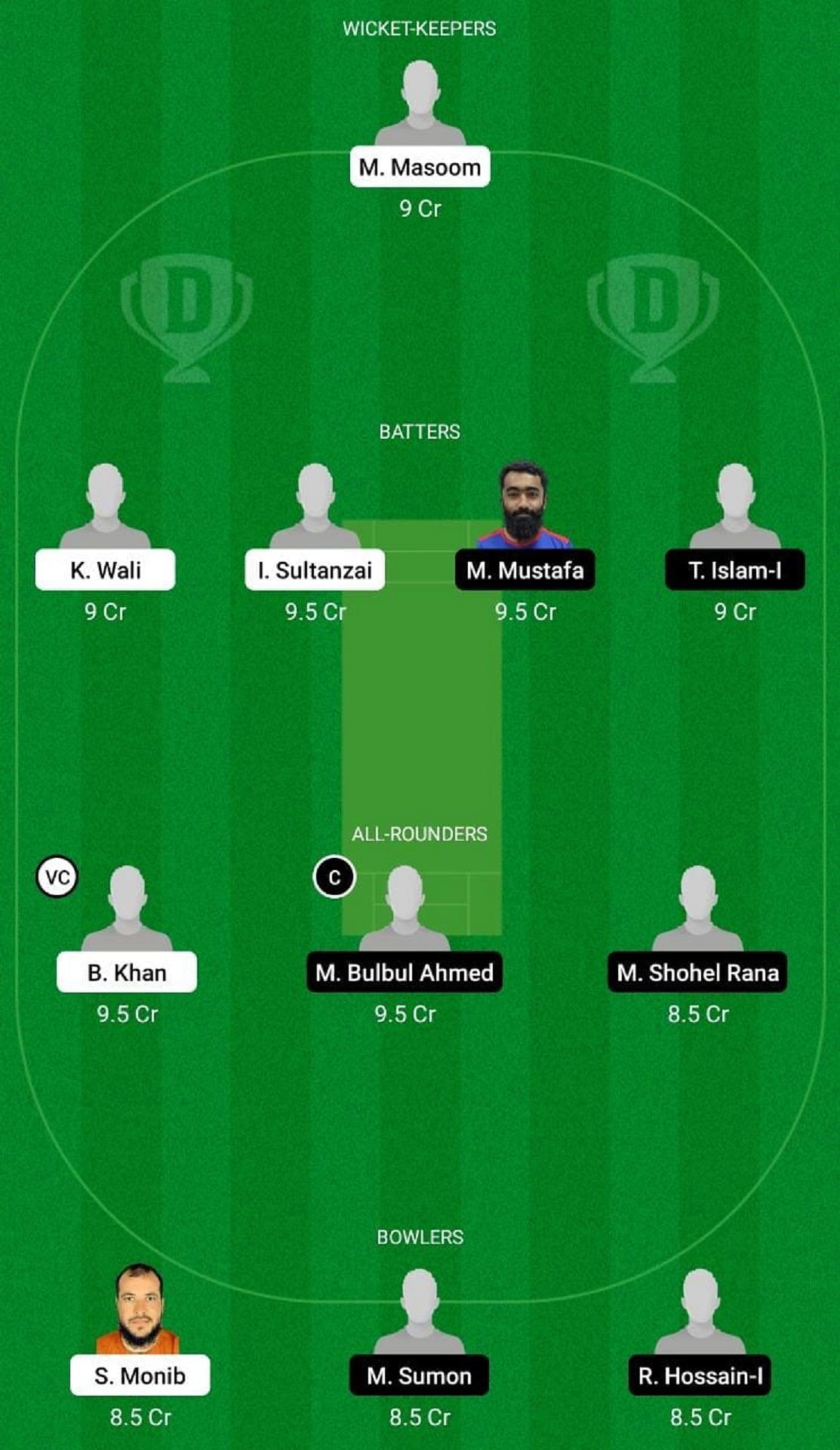 Fantasy Suggestion #1: M Masoom, K Wali, M Mustafa, I Sultanzai, T Islam, M Bulbul Ahmed, M Shohel Rana, B Khan, M Sumon, R Hossain, S Monib