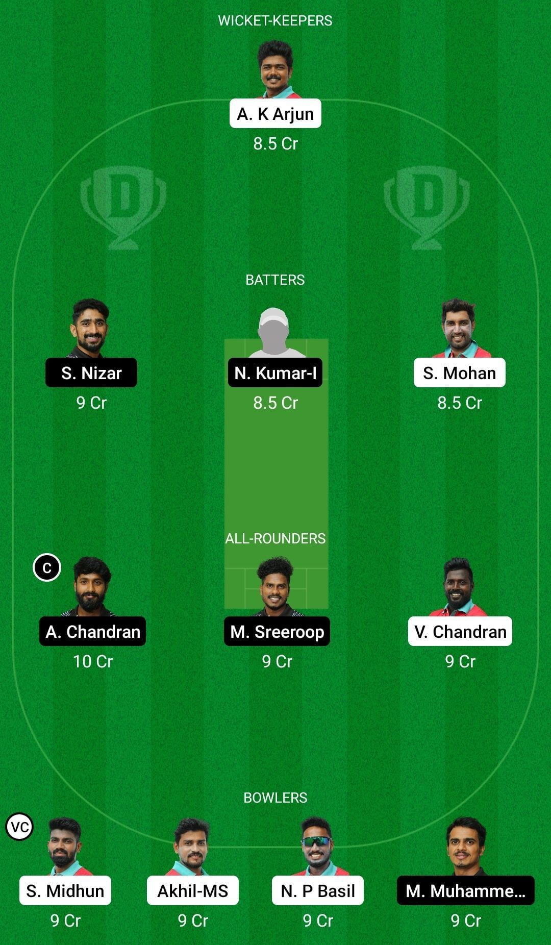 Captain: Akshay Chandran Vice-captain: Sudhesan Midhun