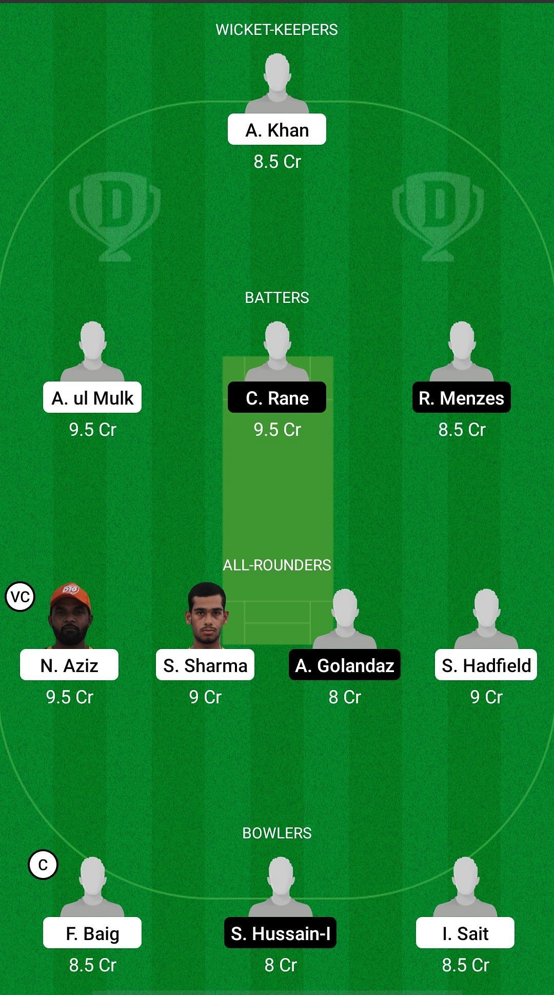 Fantasy Suggestion #1: Adnan Khan, Adnan ul Mulk, Chetan Rane, Azlam Azeez, Ridge Menzes, Nasir Aziz, Azim Golandaz, Sheldon Dcruz, Faisal Baig, Sunny Ravikumar, Ibtisham Sait.