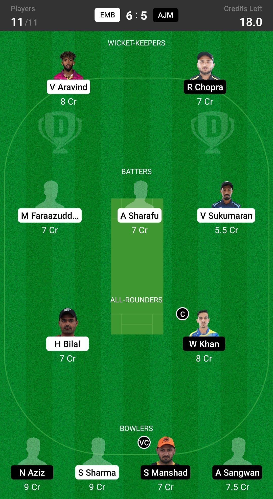Emirates Blues vs Ajman Dream11 Prediction Today, Grand League