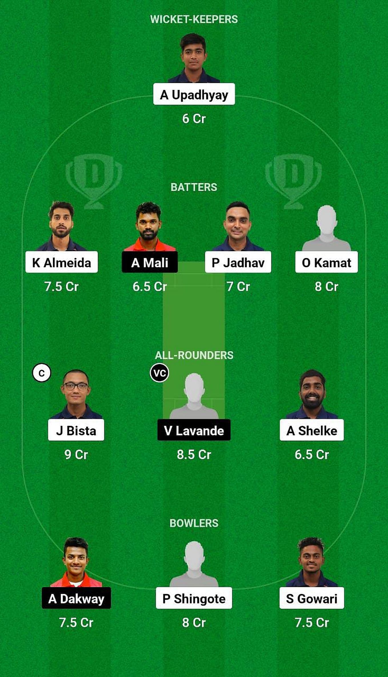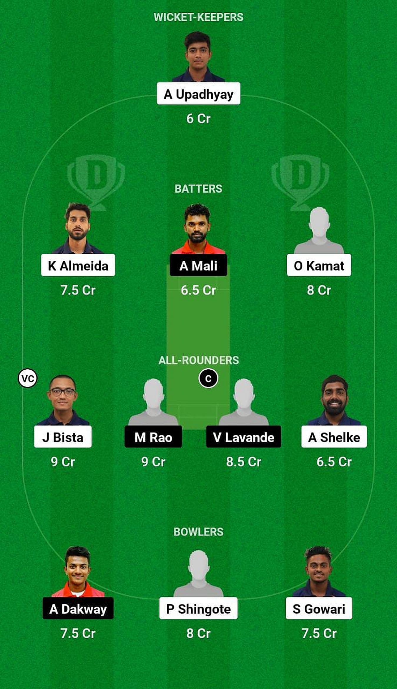 Aquib Shaikh (c), Parag Jadhay, Om Prasad Shingote, Sanket Gowari, Ashwin Shelke, Chaitanya Bhoir, Bhaiya Kumar, Adarsh Upadhyay (wk), Jay Bista, Kevin Almeida