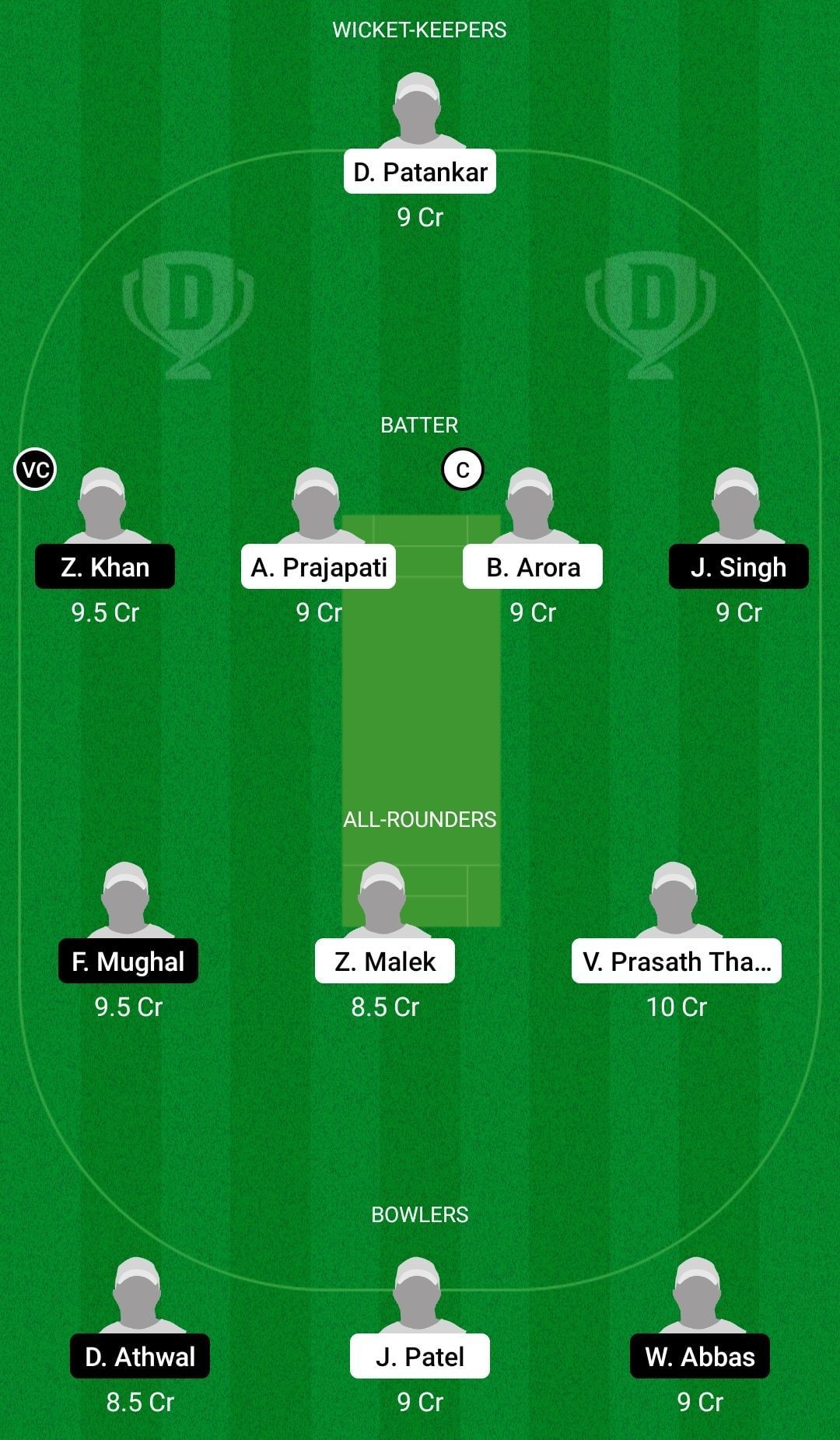 Fantasy Suggestion #2: Darshit Patankar, Zeeshan Khan, Abhishek Prajapati, Bikram Arora, Jasinder Singh, Fanyan Mughal, Zoheb Malek, Varun Prasath, David Athwal, Jit Patel, Waseem Abbas
