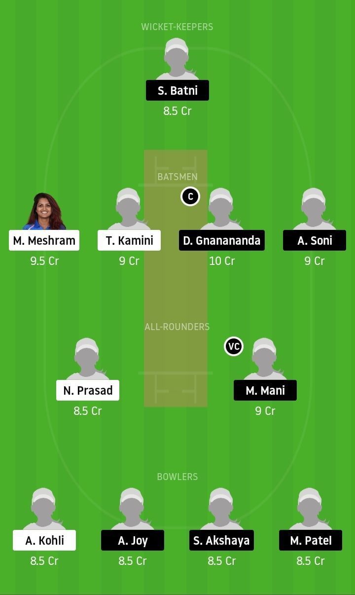 Fantasy Suggestion 1: S Batni, T Kamini, A Soni, M Meshram, N Prasad, M Mani, D Gnanananda, A Kohli, A Joy, M Patel, and S Akshaya.