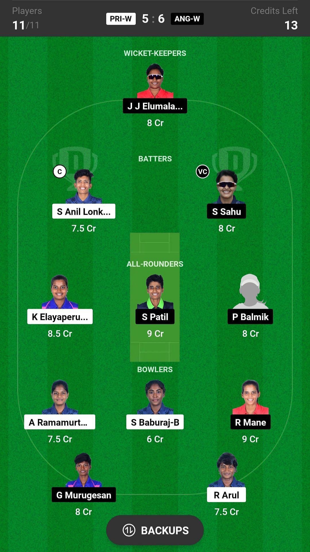 ANG-W vs PRI-W Dream11 Match Top Picks