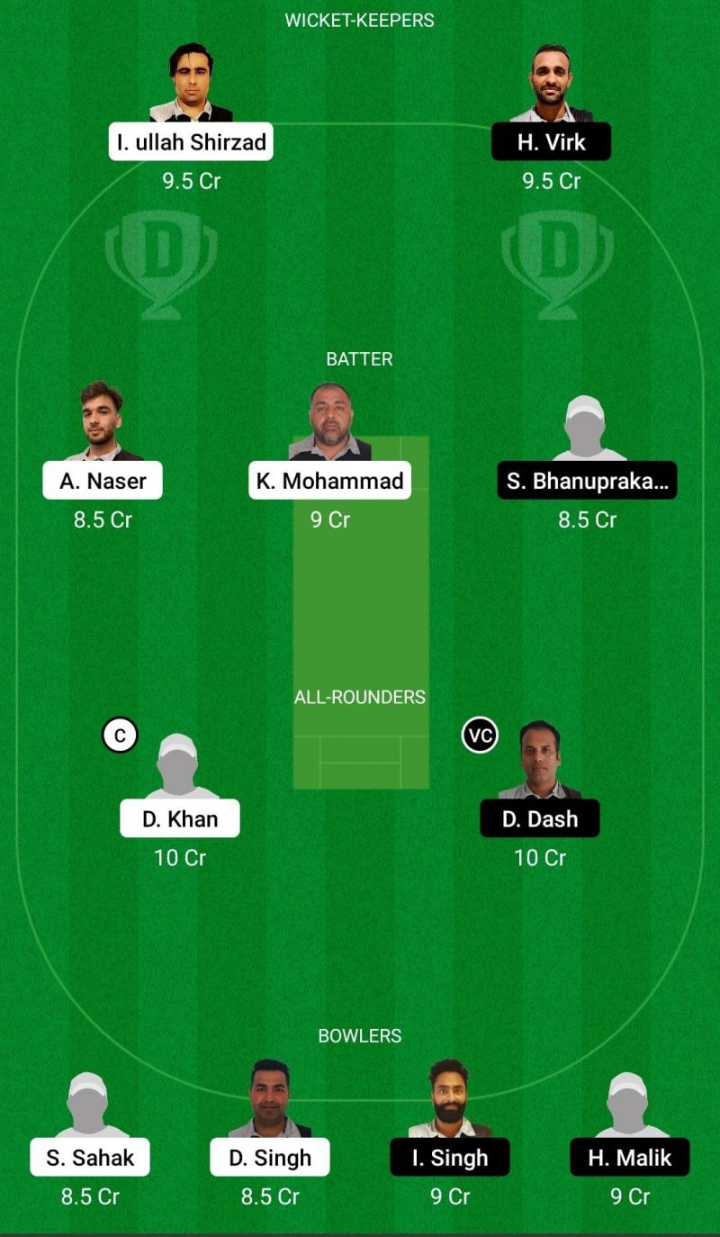 Fantasy Suggestion #2: Ihsan Shirzad, Hardeep Virk, Abdul Naser, Khaled Mohammad, Shashank Bhanuprakash, Delawar Khan, Debarchan Dash, Ashfaq Ali, Krishna Digumurthi, Dharmender Singh, Haroon Malik