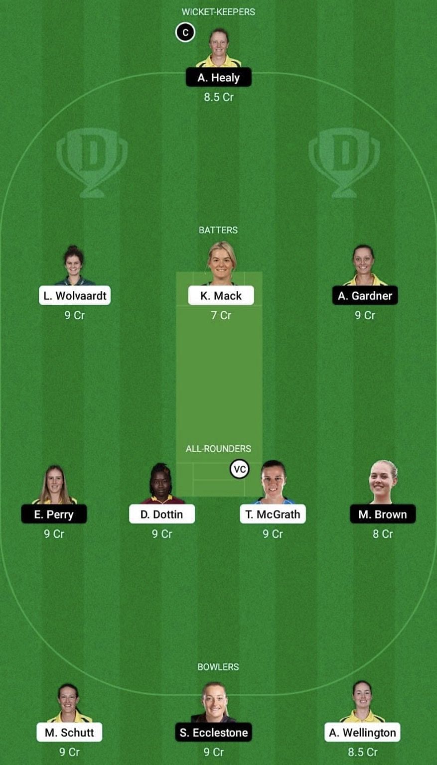 Batters: Laura Wolvaardt, Katie Mack, Ashleigh Gardner