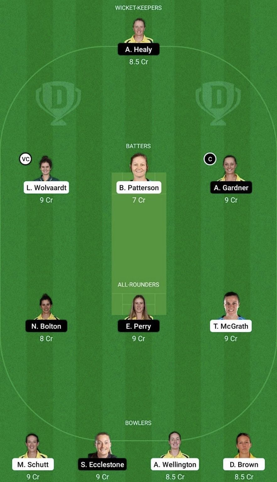 Batters: Laura Wolvaardt (vc), Bridget Patterson, Ashleigh Gardner (c)