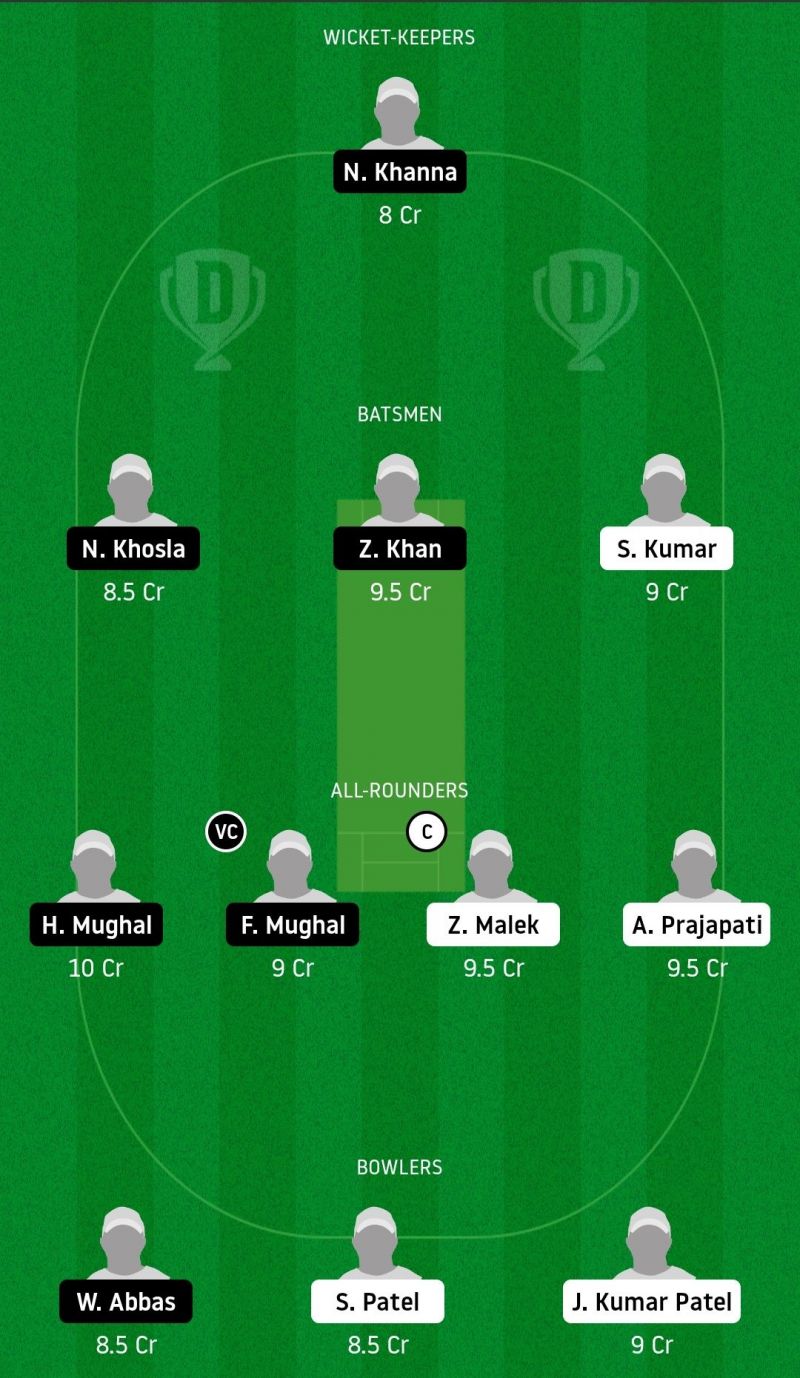 Fantasy Suggestion #1: Niraj Khanna, Nowell Khosla, Zeeshan Khan, Saneesh Kumar, Haroon Mughal, Fanyan Mughal, Zoheb Malek, Abhishek Prajapati, Waseem Abbas, Shubham Patel, Jitesh Kumar Patel.