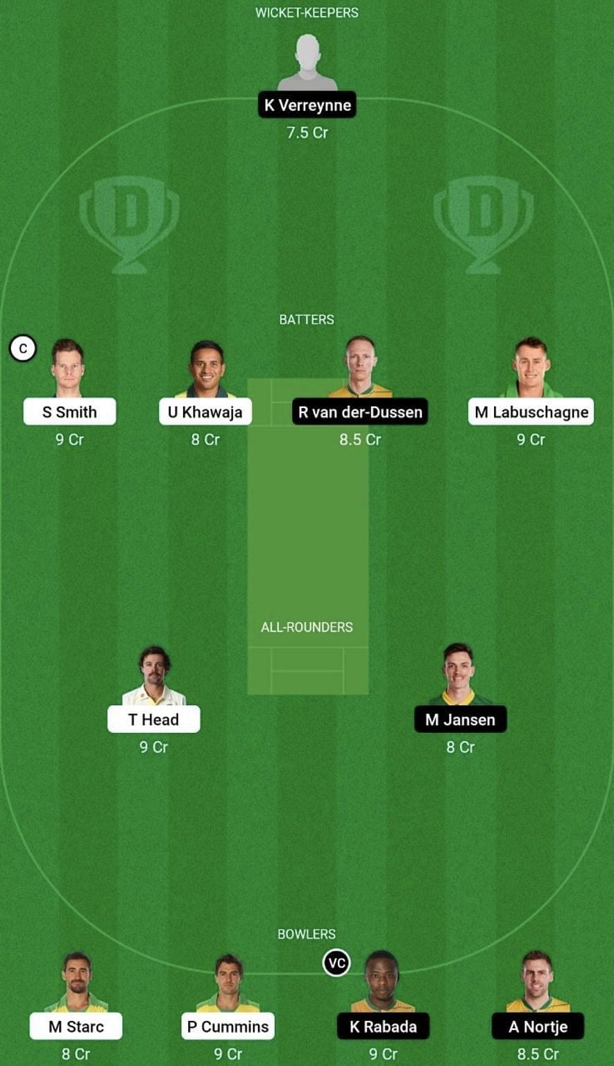Batters: Steve Smith (c), Usman Khawaja, Marnus Labuschagne, Rassie van der Dussen