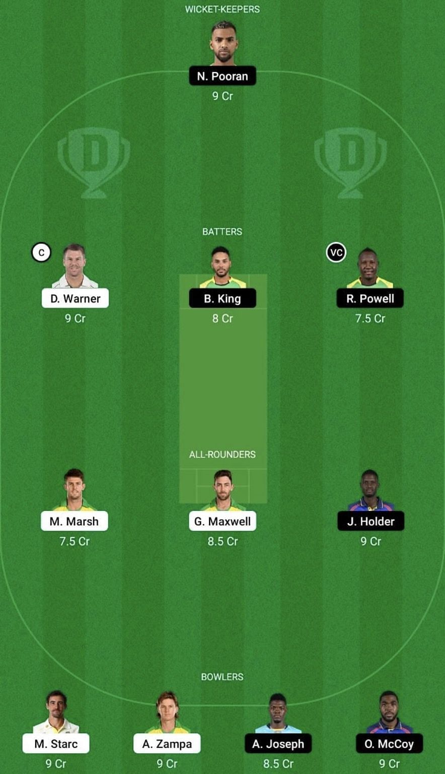 Bowlers: Mitchell Starc, Adam Zampa, Alzarri Joseph, Obed McCoy