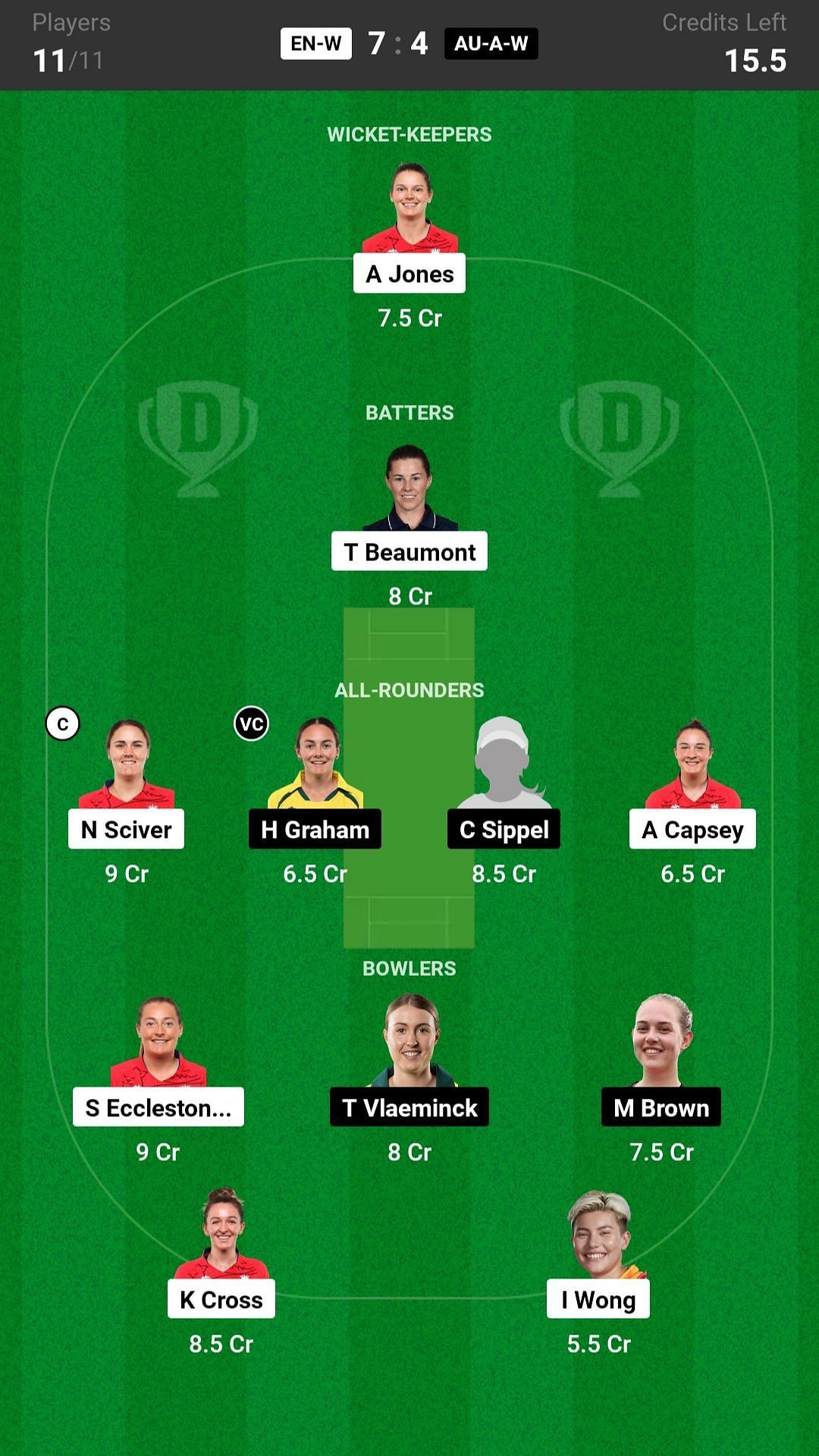 AUS-W A vs ENG-W match captain and vice-captain choices