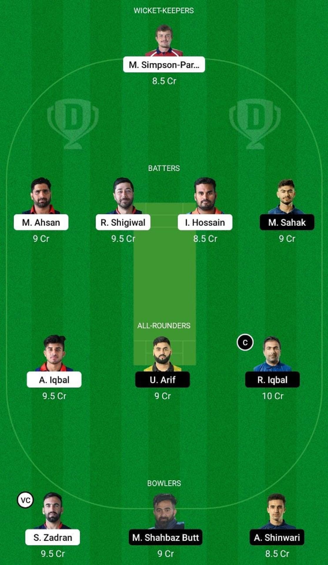Fantasy Suggestion #1: M Simpson Parker, I Hossain, R Shigiwal, M Ahsan, M Sahak, R Iqbal, A Iqbal, U Arif, S Zadran, M Shahbaz Butt, A Shinwari