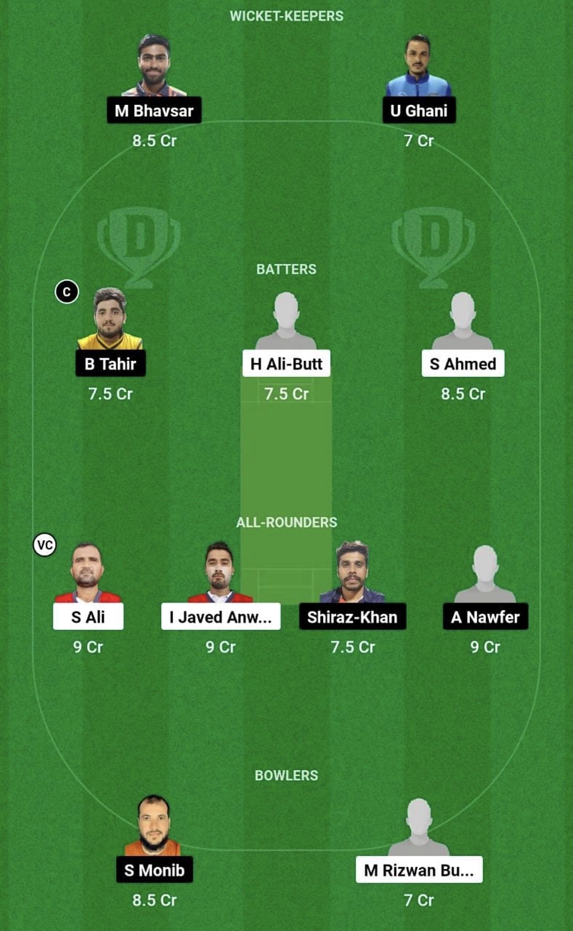 Batters: H Ali Butt, B Tahir (c), S Ahmed