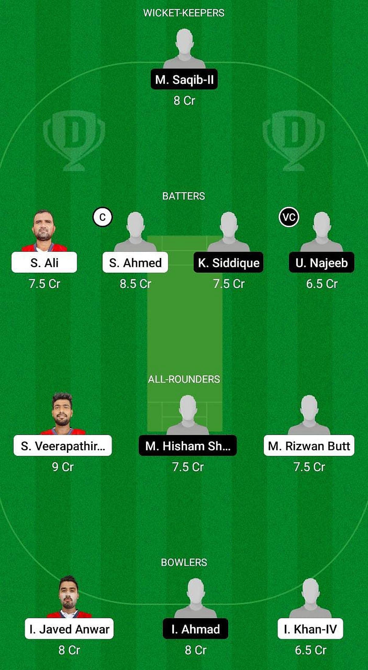 Batters: S Ali, K Siddique, S Ahmed, U Najeeb