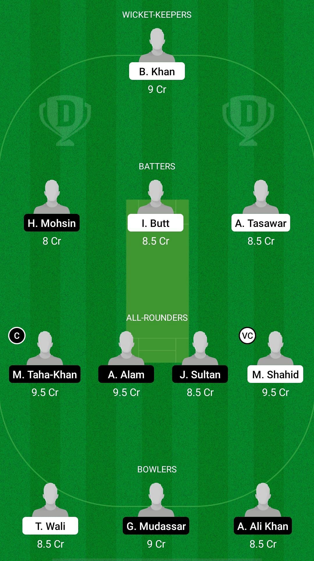 All-rounders: Mohammad Taha-Khan (c), Ammad Alam, Jahanzaib Sultan, Mohammad Shahid (vc)