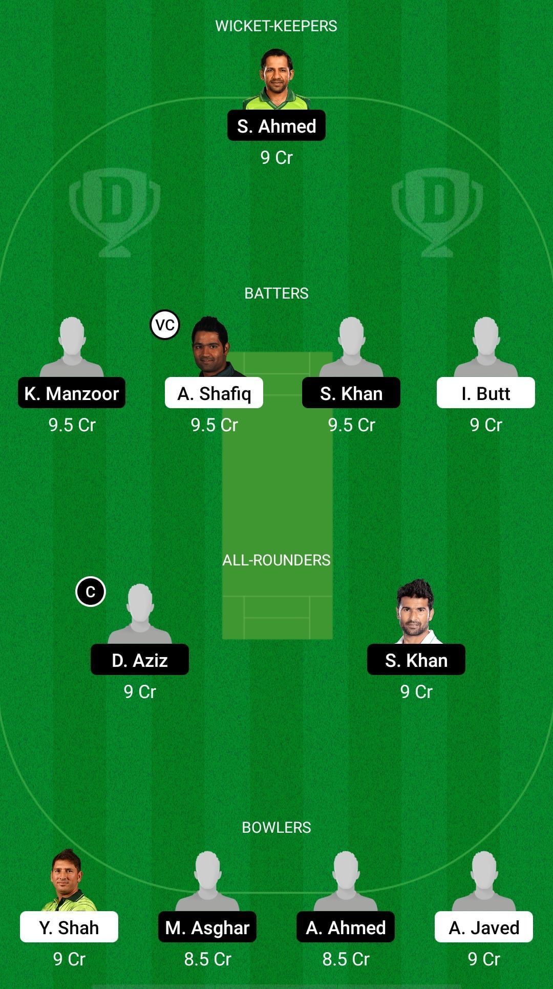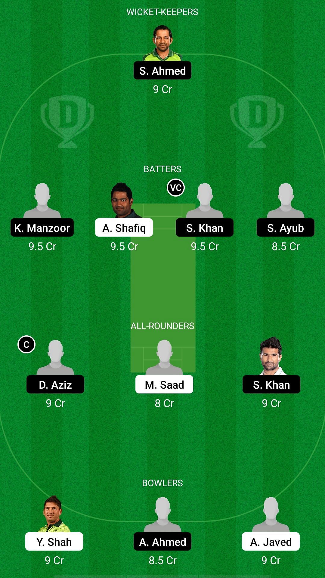 Captain: Danish Aziz. Vice-captain: Sharjeel Khan.