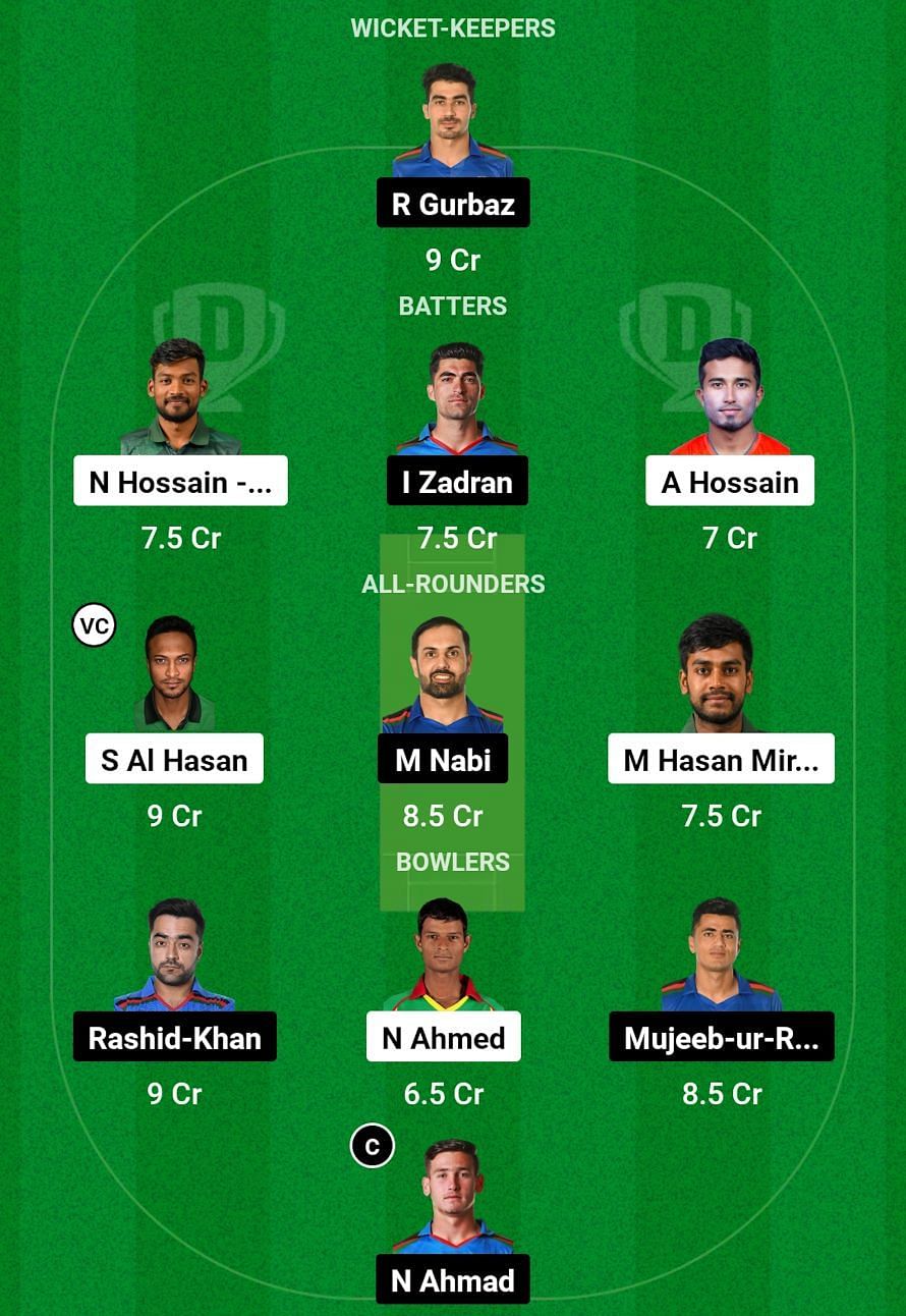 BAN vs AFG Dream11 Prediction, 1st T20I, Grand League Team