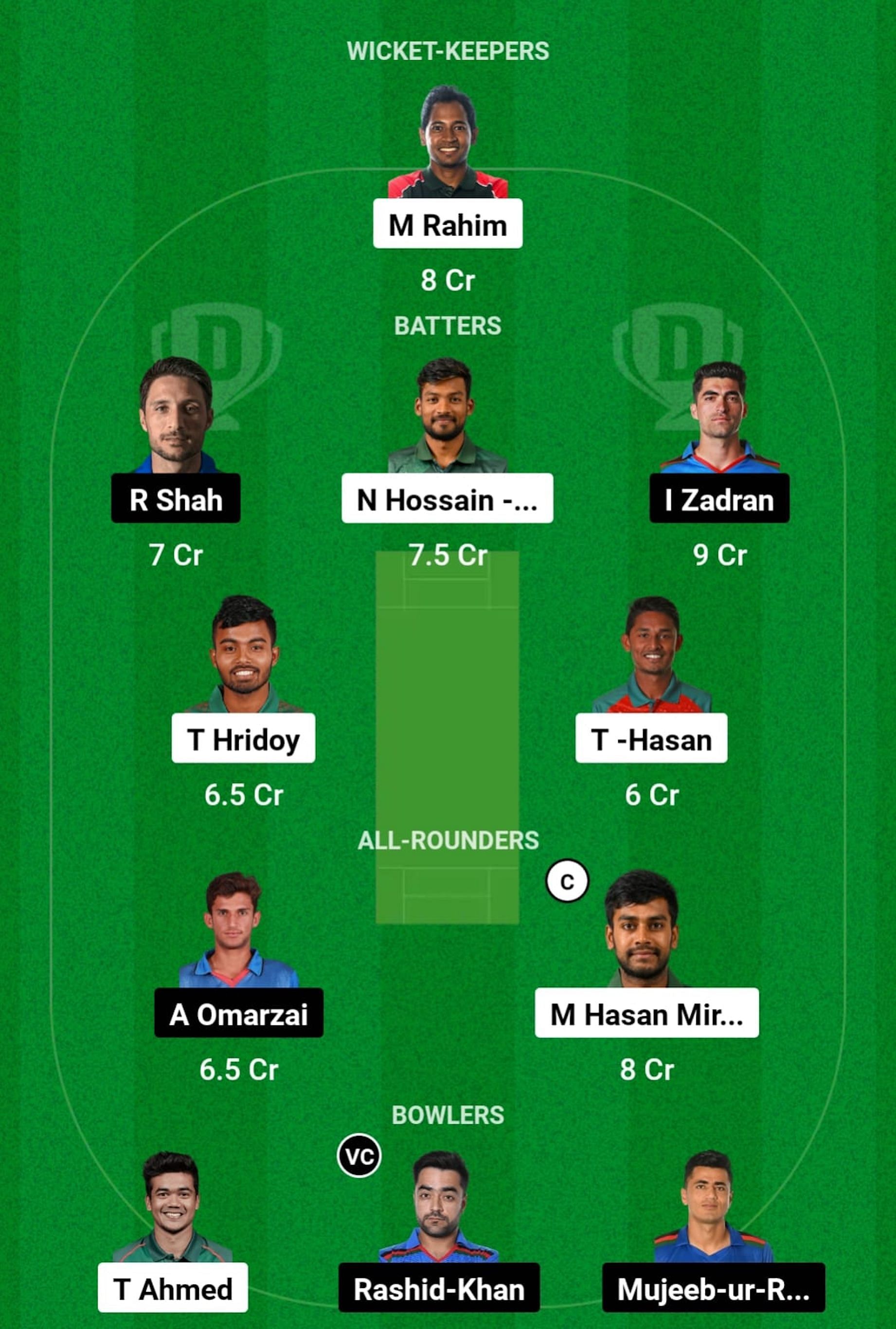 BAN vs AFG Dream11 Prediction, Match 3, Grand League Team