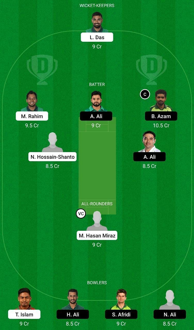 Fantasy Suggestion #1: Liton Das, Mushfiqur Rahim, Azhar Ali, Babar Azam, Najmul Hossain Shanto, Azhar Ali, Mehidy Hasan, Taijul Islam, Hasan Ali, Shaheen Afridi and Nauman Ali